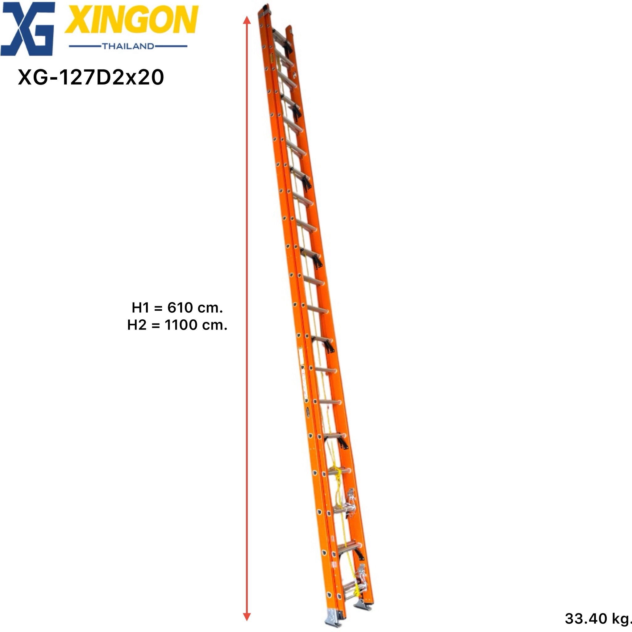 บันไดพาด2ตอนเลื่อนไฟเบอร์กลาส20ฟุต XG-127D2x20