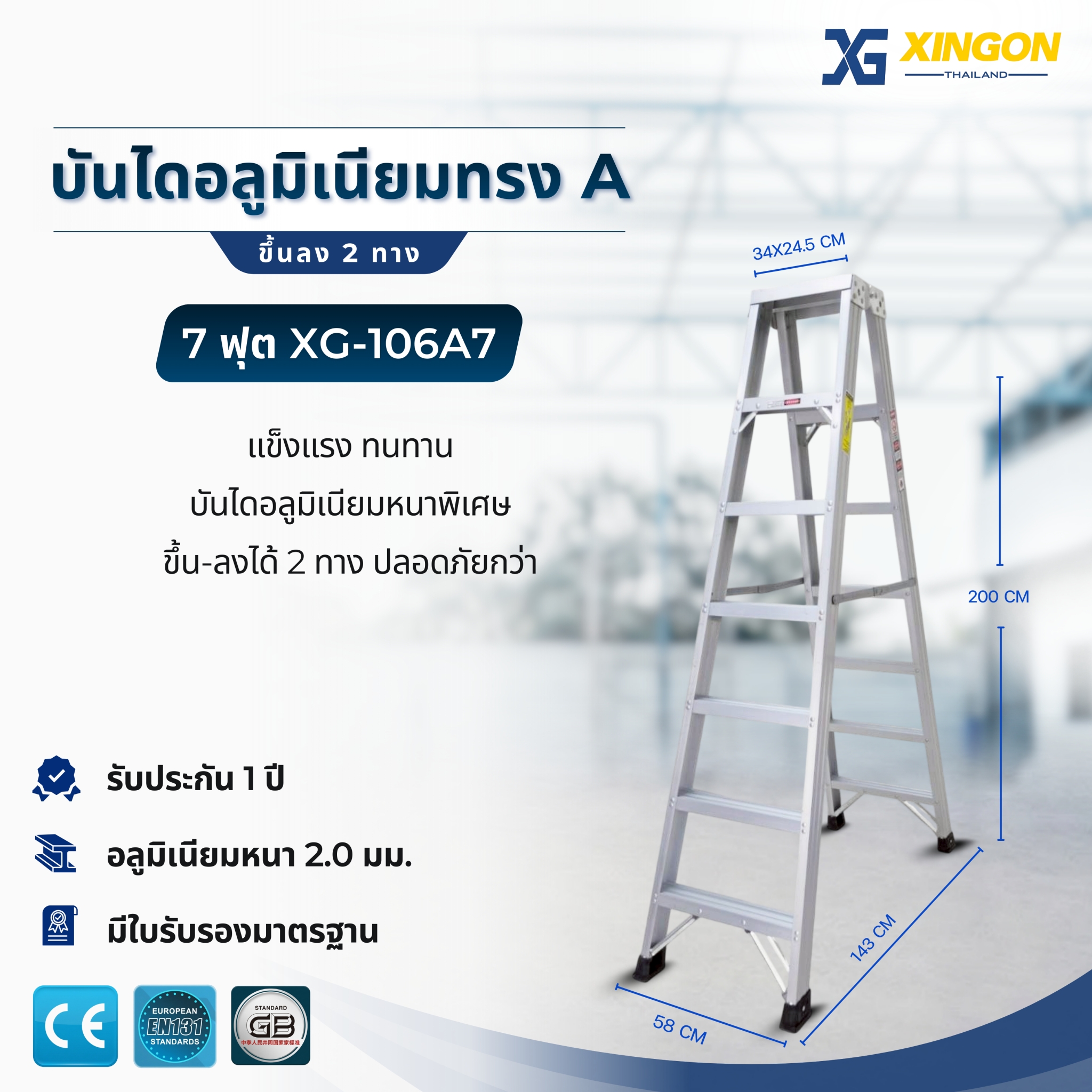 บันไดอลูมิเนียมทรงเอใช้งานได้2ทาง อลูมิเนียมหนา 2 มม. รีเวทใหญ่ทนทานมีความแข็งแรงสูง บันไดอลูมิเนียมขึ้นลงได้2ทาง6ขั้นไม่เป็นสนิมแบรนด์XINGON รับน้ำหนักได้ 150 กก.