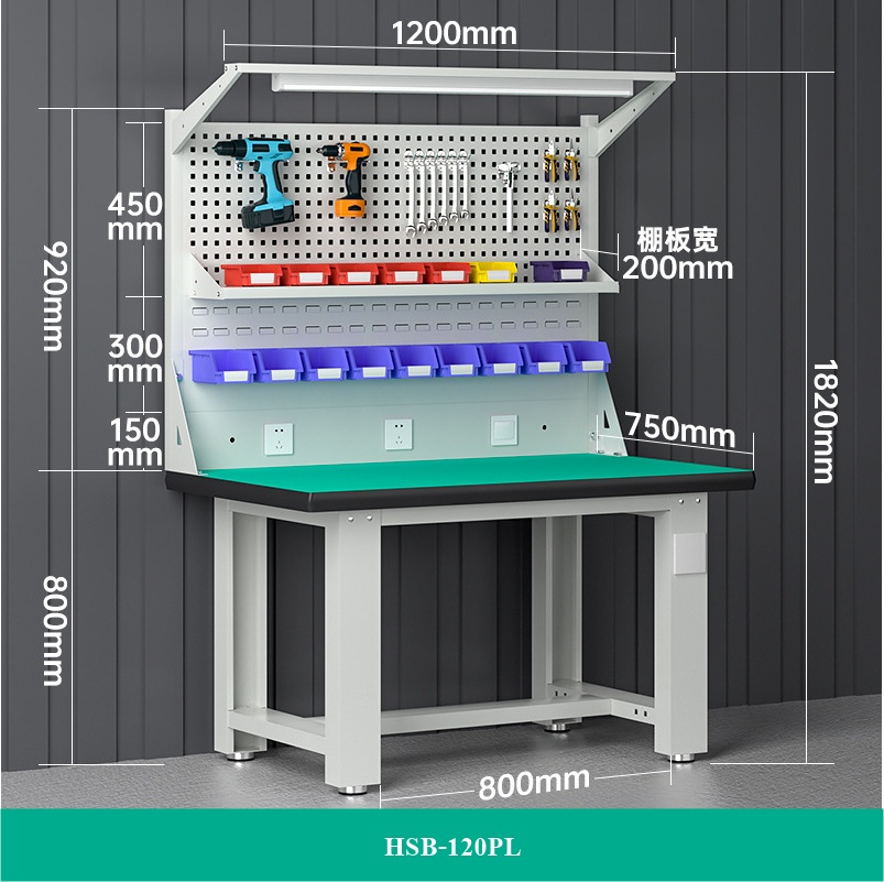 โต๊ะทำงานช่างESDมีแผงแขวนเครื่องมือ 120x75x80 CM.รับน้ำหนักได้1000กก. HSB-120PL